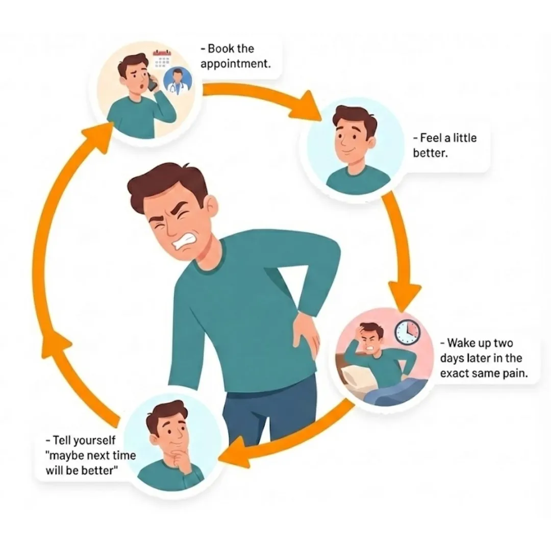 They're treating the wrong thing. And even the ones getting results can only give you temporary relief — because the model they work in isn't designed for a permanent fix. It's designed for repeat visits.