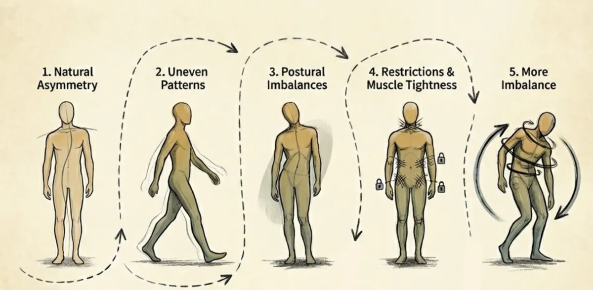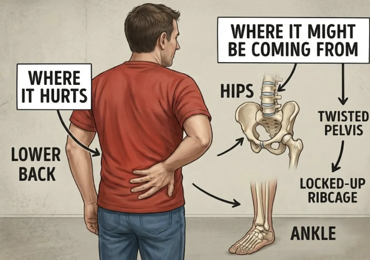 "Back pain? Treat the back." That's the playbook. Nobody's looking at your locked-up ribcage, your twisted pelvis, or the old ankle injury that quietly threw your whole alignment off years ago.